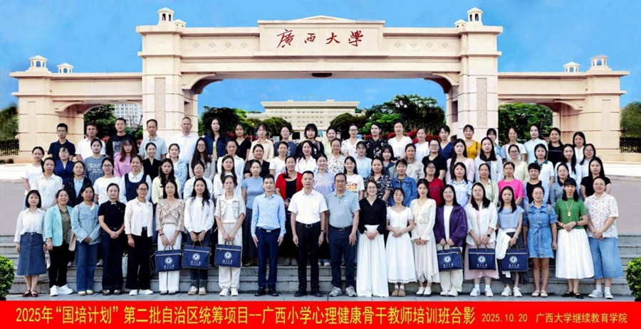 10月20日上午,由广西壮族自治区教师培训中心主办,广西大学承办的2025年“国培计划”第二批自治区统筹项目——广西小学心理健康骨干教师培训班在我校开班,米兰体育院长闭富春出席开班式并致辞,米兰体育梁君华老师主持开班式。