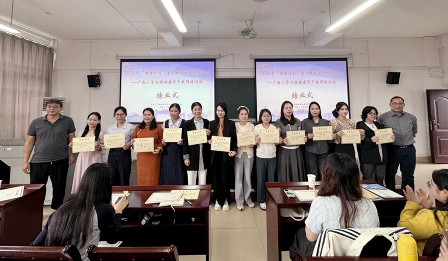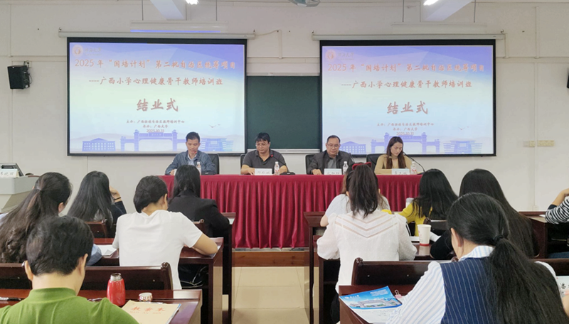 10月31日,由广西壮族自治区教师培训中心主办,广西大学承办的2025年“国培计划”第二批自治区统筹项目——广西小学心理健康骨干教师培训班在我校顺利结业,米兰体育副院长邓珍琪出席结业式并致辞。