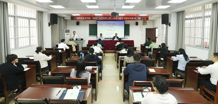10月27日,广西职业技术学院“2030”人才培养工程人选能力提升专题培训班(第二期)在我校开班。广西职业技术学院党委委员、党委组织部(学院人事处、教师发展中心)部长(处长、主任)李继宏出席开班式并作动员讲话,米兰体育院长闭富春出席开班式并致辞。
